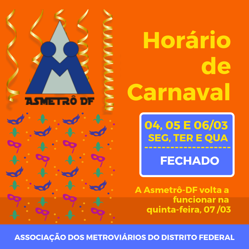 O expediente da Asmetrô-DF voltará ao funcionamento na quinta-feira, 07 de março.