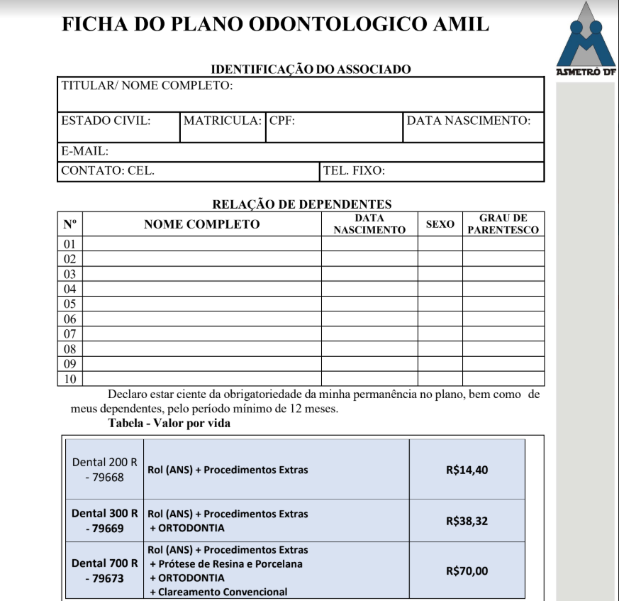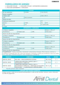 FORMULÁRIO DE ADESÃO AO PLANO DENTAL AMIL