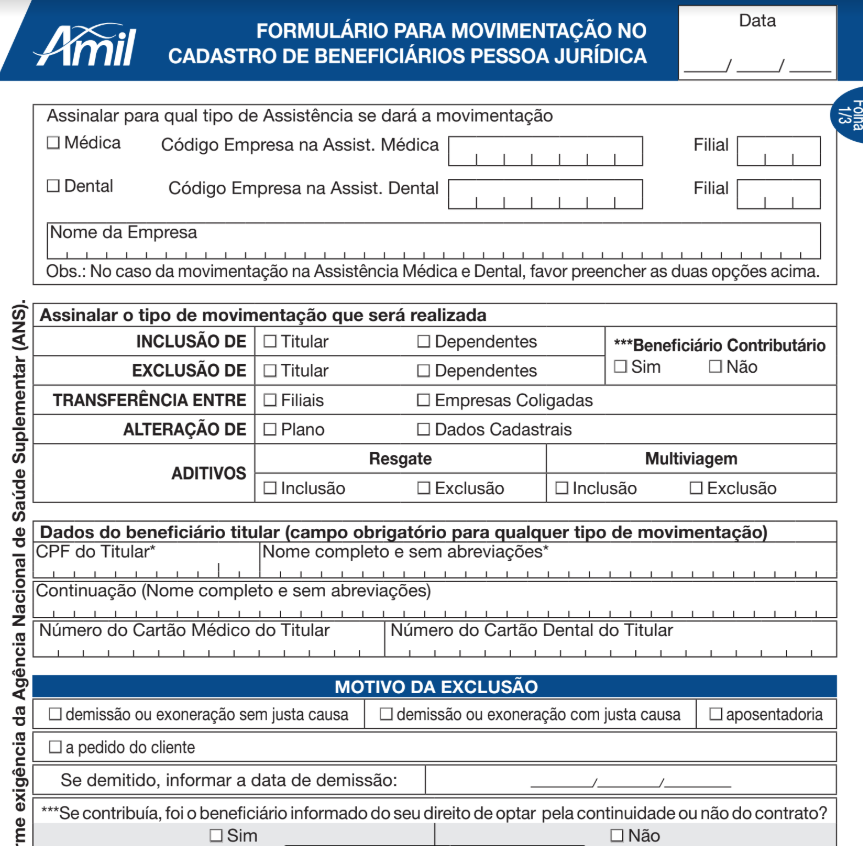 MOVIMENTAÇÃO DE BENEFICIÁRIO – PLANO DE SAÚDE