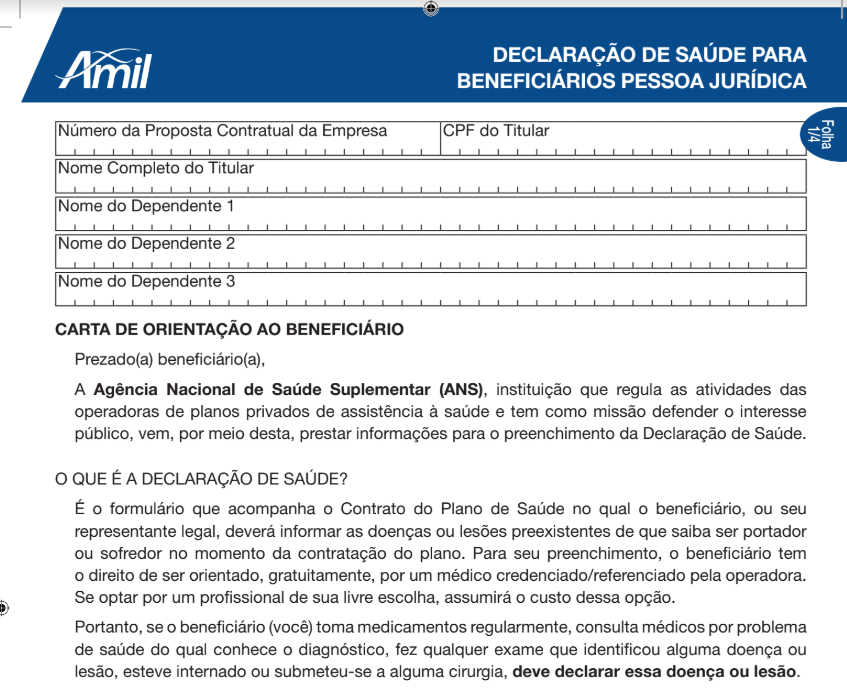 DECLARAÇÃO DE SAÚDE – AMIL