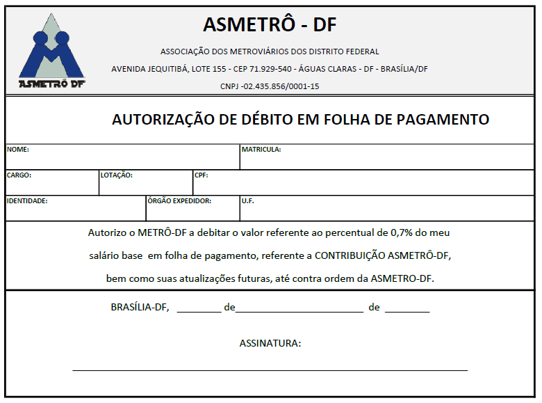 AUTORIZAÇÃO DE DÉBITO EM FOLHA DE PAGAMENTO