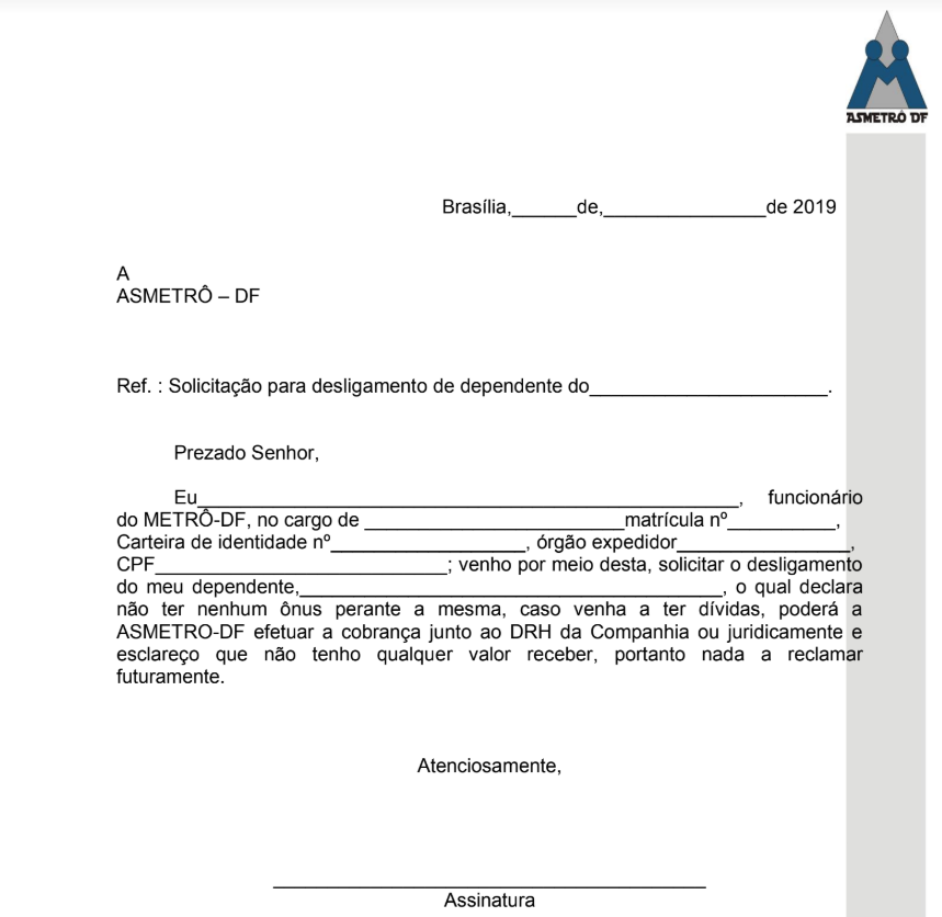FICHA DE DESLIGAMENTO DE DEPENDENTE