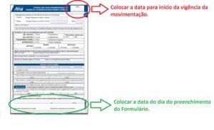 Parte Superior do documento: Data para início da vigência da movimentação.