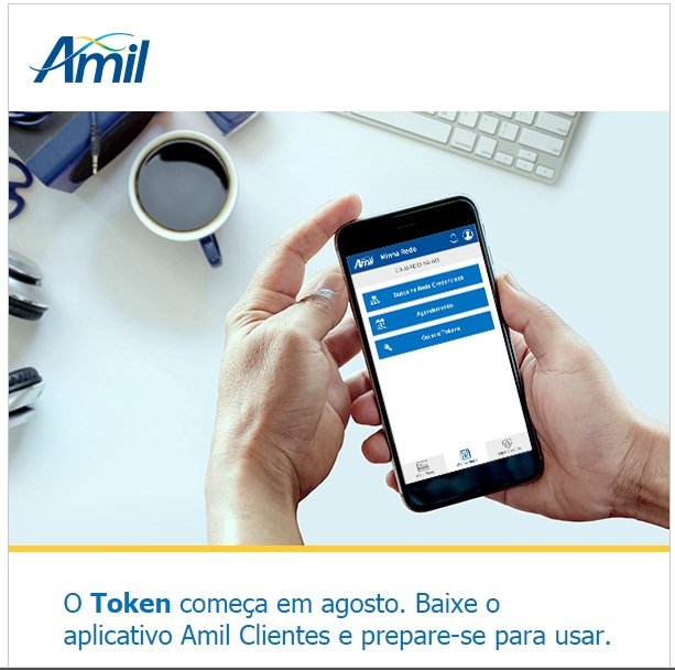 O Token comeca em agosto. Baixe o aplicativo Amil Clientes e prepare-se para usar.